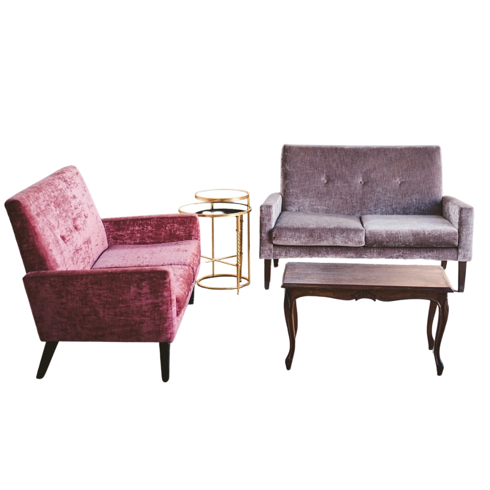 LOVE SEAT SOFA SET – GREY, DUSTY PINK SOFA